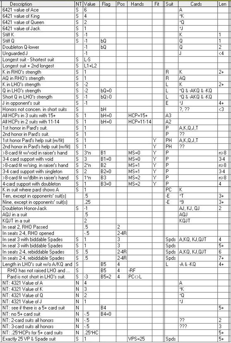 Based on a study of hands like these, and just comparing two supposedly 6-VP holdings -- A432 and KQJT -- it is clear that KQJT is undervalued and so 2 evaluation points are added in BidBase for the KQJT holding.
