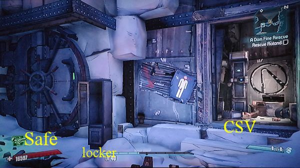 To the left of the closet (in TVH mode) will be a safe which is a duplicate of the one in Sanctuary. This will also come in handy in storing weapons to send to other characters although it cannot be used to pass gear to other characters. And again, the safe and CSV are not here for the current character in Normal mode.