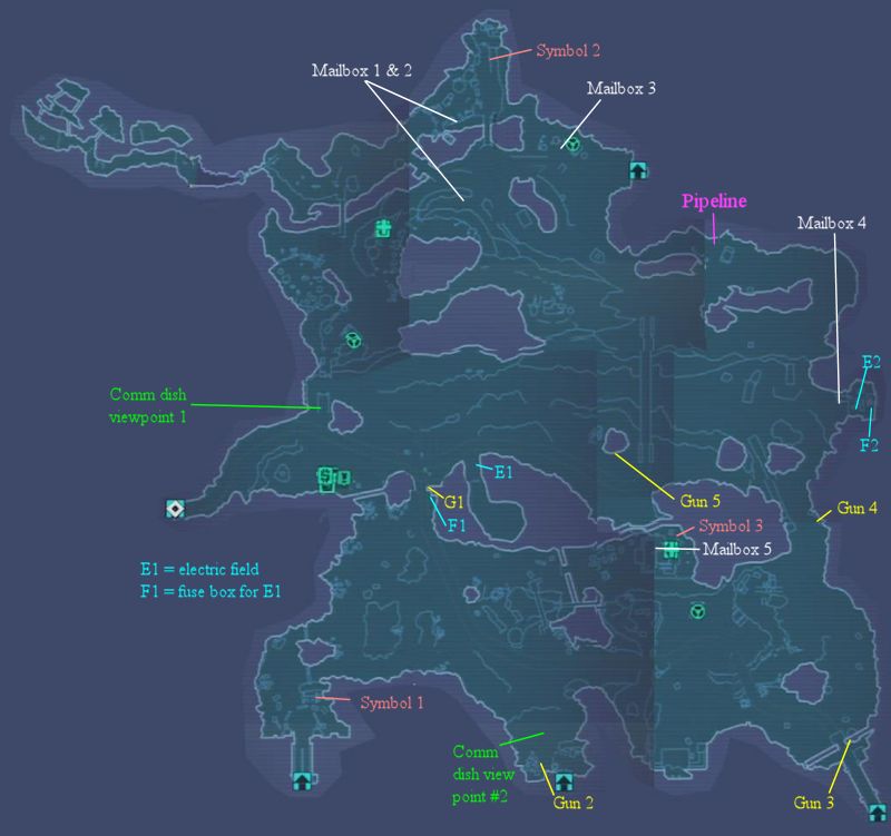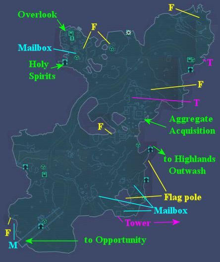 Arms Dealing: This is a timed mission. Before starting it, make a dry run where you go to each of the mail boxes shown on the map. Be sure to kill all the critters and robots at each location so they don't slow you down.