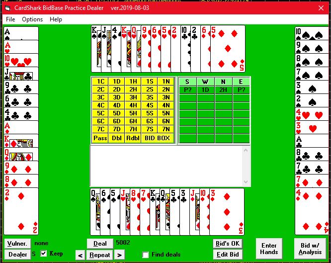 Any time you see a hand in a bridge tournament or in a magazine, newspaper column, or book and want to see how BidBase would have bid it, this is the tool for that.