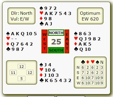 Bidding (Dealer=North): 2 East's Limit Raise Cue Bid normally shows 4-card support, but otherwise seemed to be the most accurate. West's Losing Trick Count: S=0 + H=0 + D=3 + C=3 = 6