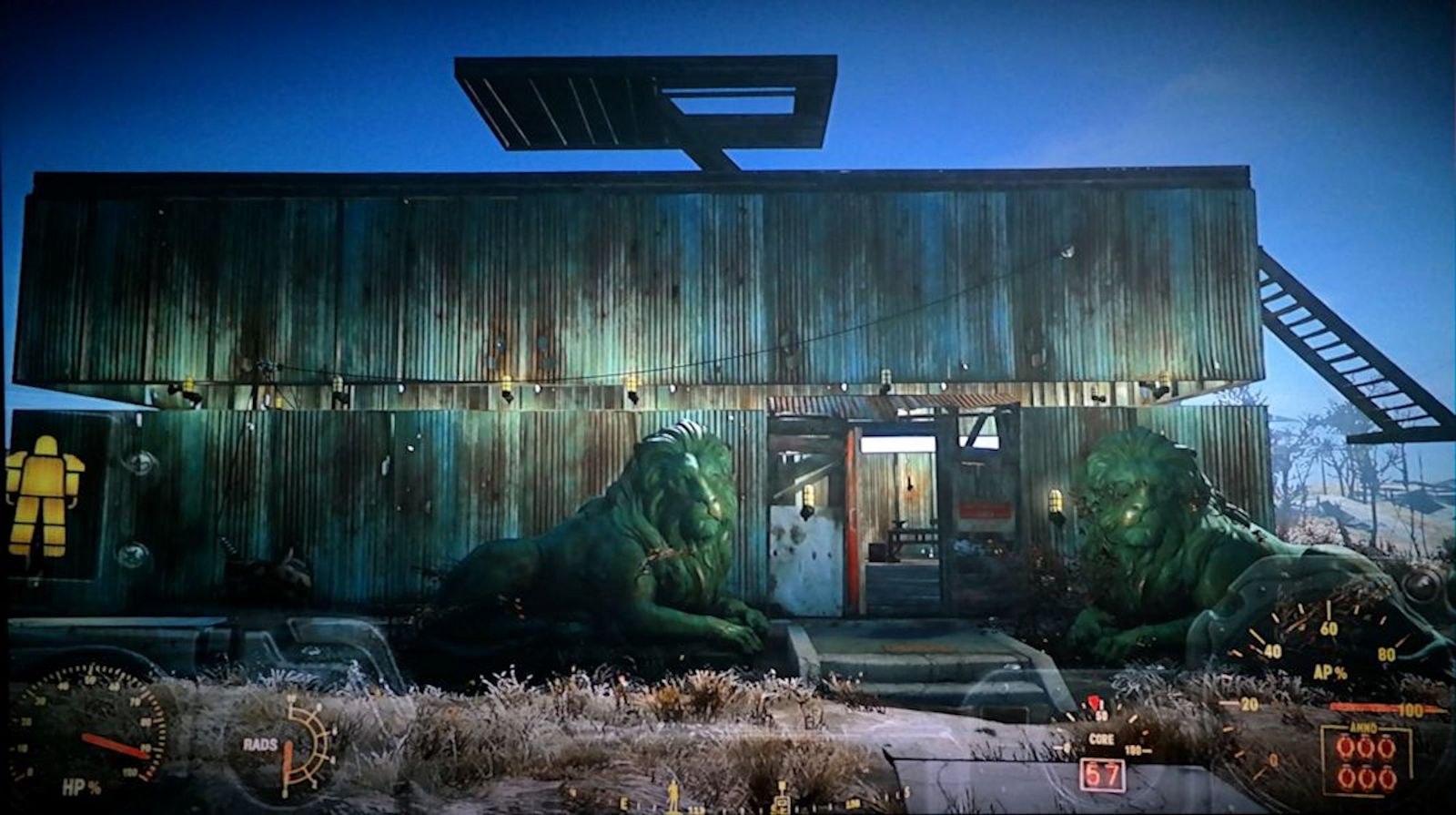 (In the background, by the lion's nose, is a settler who I equipped with a spare missile launcher for increased security.)
